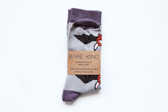 Bat design, lilac/purple bamboo socks that help to save endangered animals - Bare Kind donate 10% of profits from these socks to the Bat Conservation Trust.