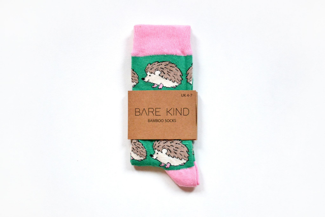 'Save the Hedgehogs' Bamboo Socks, Bare Kind - pink/green adult