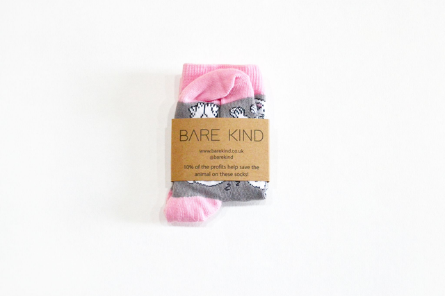 Rabbit design, grey/pink socks that help rescue rabbits - Bare Kind donate 10% of profits from these socks to One Bun at a Time rescue charity.